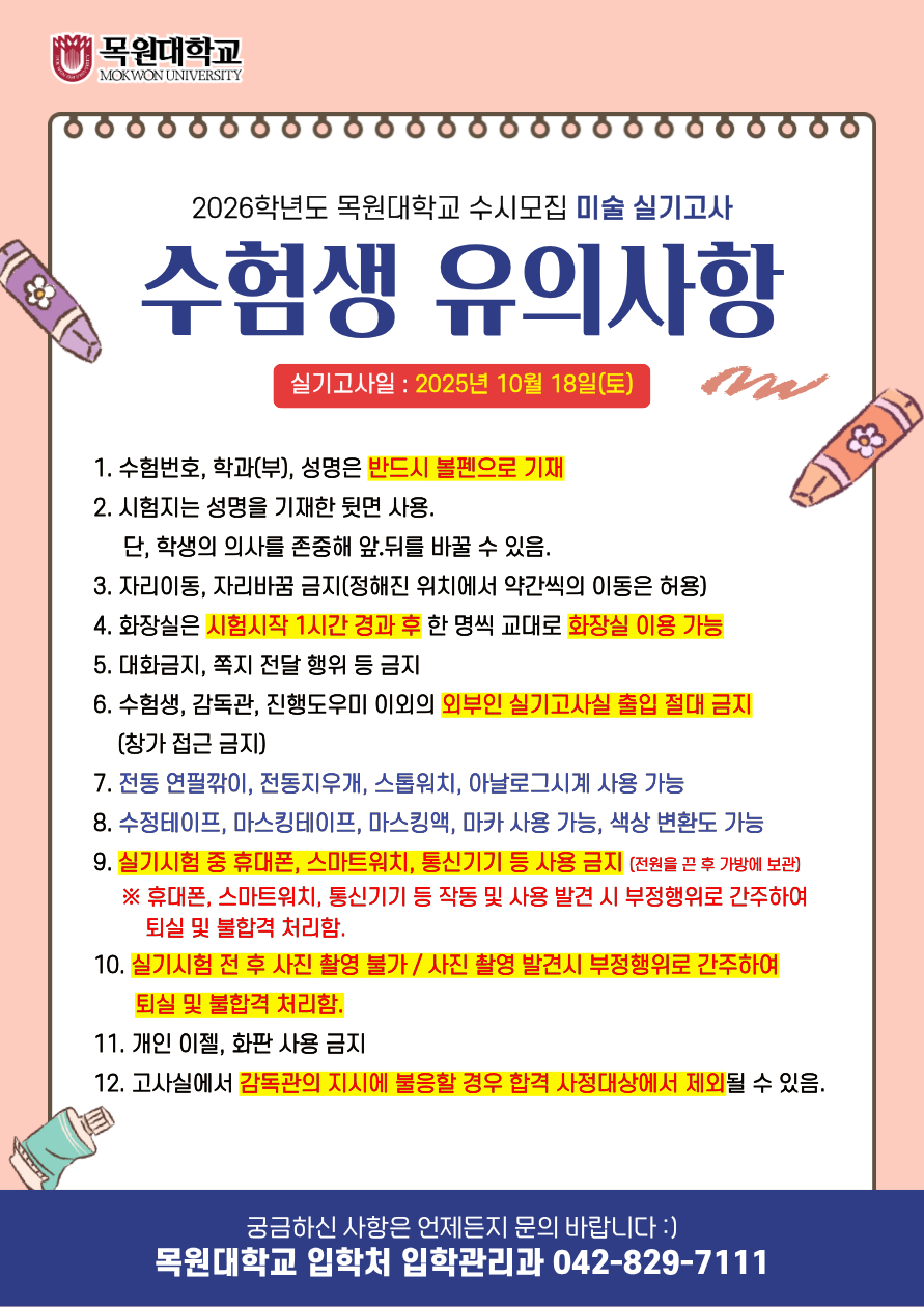 2026학년도 목원대학교 수시모집 미술 실기고사 수험생 유의사항 안내.png